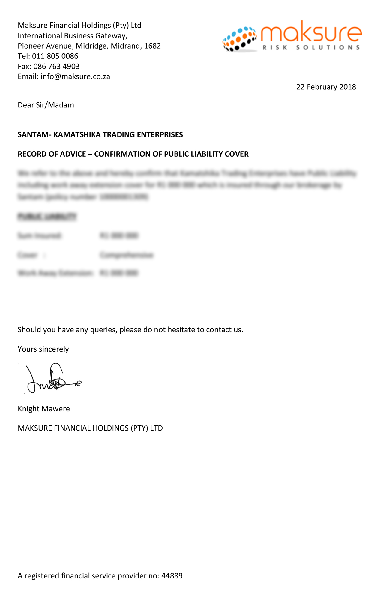 154 Zastron str Office No: 6 Oxford Office Park